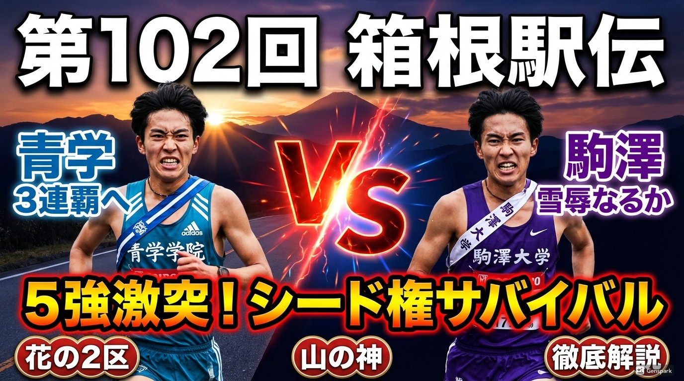 第102回箱根駅伝は、レースではない。もはや火薬庫だ。絶対的本命不在、少なくとも5つの大学が優勝を狙える戦力を有する今大会は、近年稀に見る最も苛烈で予測不可能な覇権争いとなるだろう。この混沌とした戦局を読み解く鍵は3つの物語にある。王座を巡る**「5強」の激突**、個の力で戦局を覆す**「ゲームチェンジャー」の存在、そしてもう一つの過酷な生存競争「シード権争い」**だ。果たして大手町のフィニッシュテープを最初に切るのはどの大学か。我々は、歴史が動く瞬間を目撃することになる。